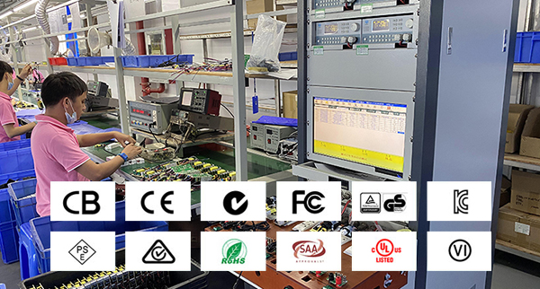 公司產(chǎn)品已通過多項(xiàng)國(guó)際和國(guó)內(nèi)權(quán)威認(rèn)證,包括:ISO9001質(zhì)量管理體系認(rèn)證;中國(guó)CCC認(rèn)證;歐盟CB認(rèn)證、CE認(rèn)證GS認(rèn)證、RoHS認(rèn)證;美國(guó)FCC認(rèn)證、ETL認(rèn)證、UL認(rèn)證(UL1310標(biāo)準(zhǔn)、UL60065標(biāo)準(zhǔn)、UL60950-1標(biāo)準(zhǔn));日本PSE認(rèn)證;韓國(guó)KC認(rèn)證、KCC認(rèn)證;印度BIS認(rèn)證